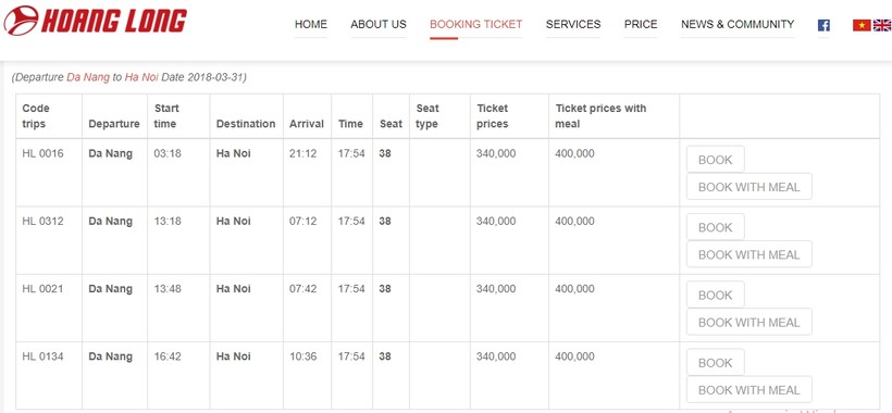 Проезд без питания будет стоить 340 000 донг (15 долларов), за еду надо будет доплачивать еще 60 000 донг (2.6 доллара).