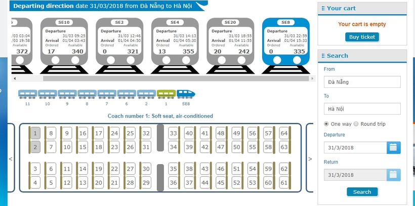 Из Дананга в Ханой каждый день курсирует несколько поездов категории SE. Достаточно удобные, оборудованы всем необходимым для длительного путешествия.
