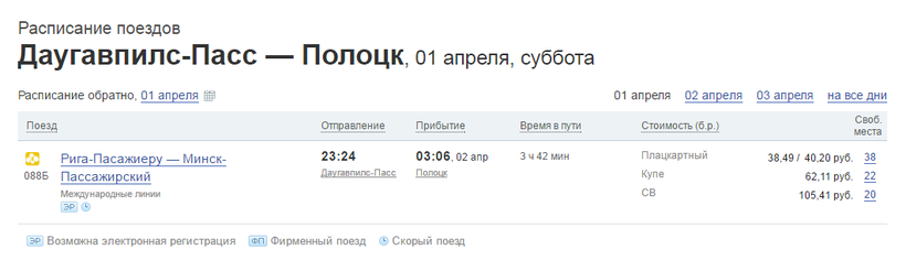 Стартует этот поезд в 23:24 и прибывает в Полоцк в 3:06. Но график движения таки лучше уточнять перед поездкой, все может измениться. Посмотреть расписание можно на сайте белорусской железной дороги, его я укажу ниже.