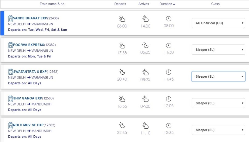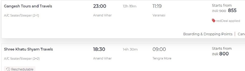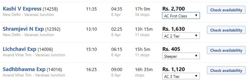 Ниже приведена информация о том, сколько часов вам потребуется, чтобы добраться от Дели до Варанаси, а также приведена примерная стоимость проезда (средняя цена билета) на том или ином виде транспорта.