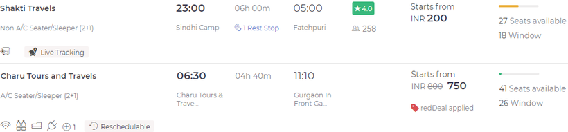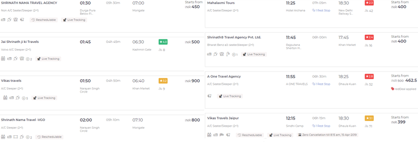 Ниже приведена информация о том, сколько часов вам потребуется, чтобы добраться от Джайпура до Дели, а также приведена примерная стоимость проезда (средняя цена билета) на том или ином виде транспорта.