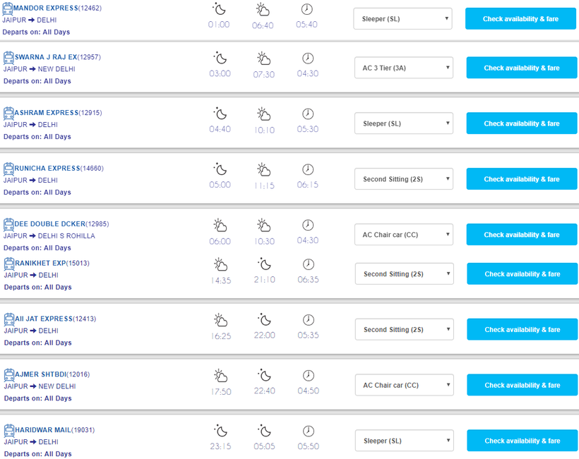 Путь из Джайпура в Дели поезда проезжают за 4,5–6,5 часов. Но обратите внимание, что прибывают поезда на 4 ж/д вокзала Дели: