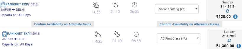 Самый дешевый билет на поезд до Дели стоит от 120 рупий (около 2 $ или 115 руб.). А поездка в Дели в вагонах 1-го класса стоит от 1300 рупий (19 $ или 1230 руб.).