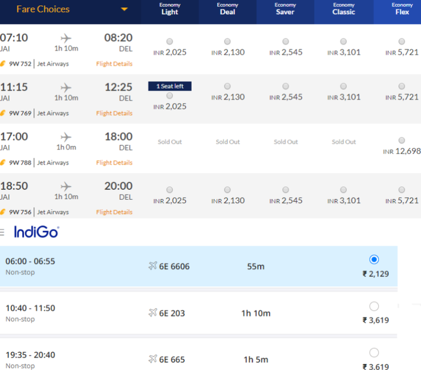 Я для преодоления пути из Джайпура в Дели выбрала самолет, так как по сравнению с другими видами транспорта цена на авиабилеты незначительно выше.