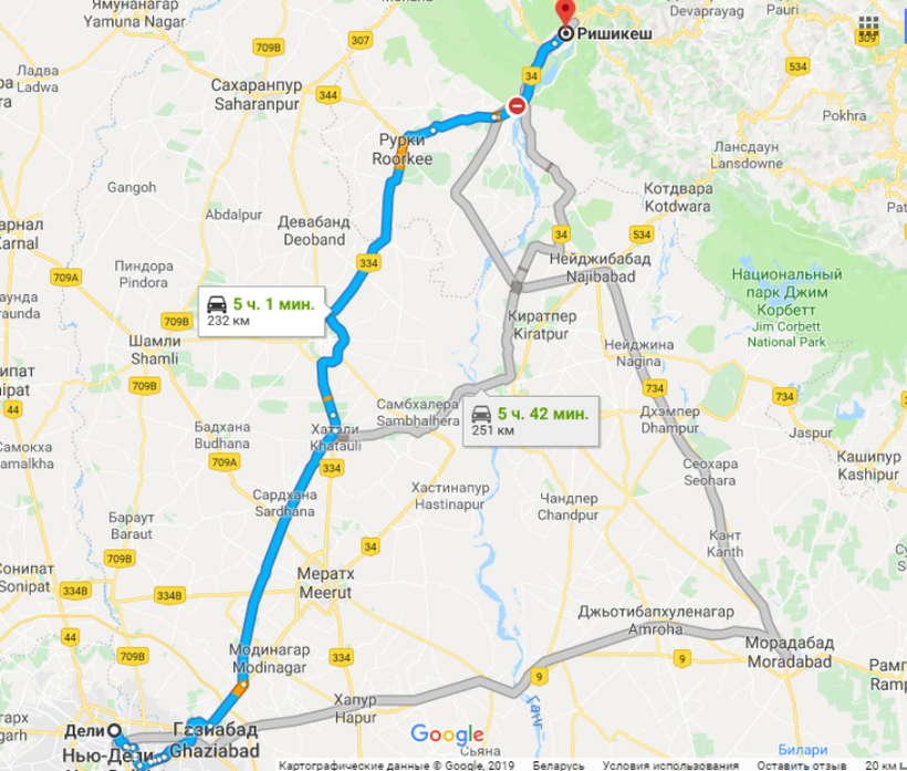 Путь в Ришикеш из Дели лежит по дорогам NH334 и Upper Ganga Canal. Дороги на маршруте узкие и в основном без разметки, но все же есть и хорошие (платные) участки для движения. Так, за проезд по платным участкам дороги до Ришикеша придется заплатить около 300 рупий (285 рублей).