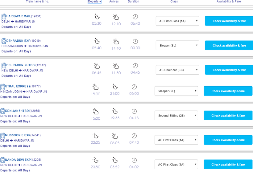 Выехать из Дели в Хардвар на поезде можно ежедневно в: