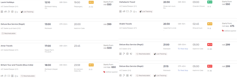 Большинство автобусов из Ришикеша отправляется от Old Bus Station Road, и свой путь преодолевают за 6–7 часов.