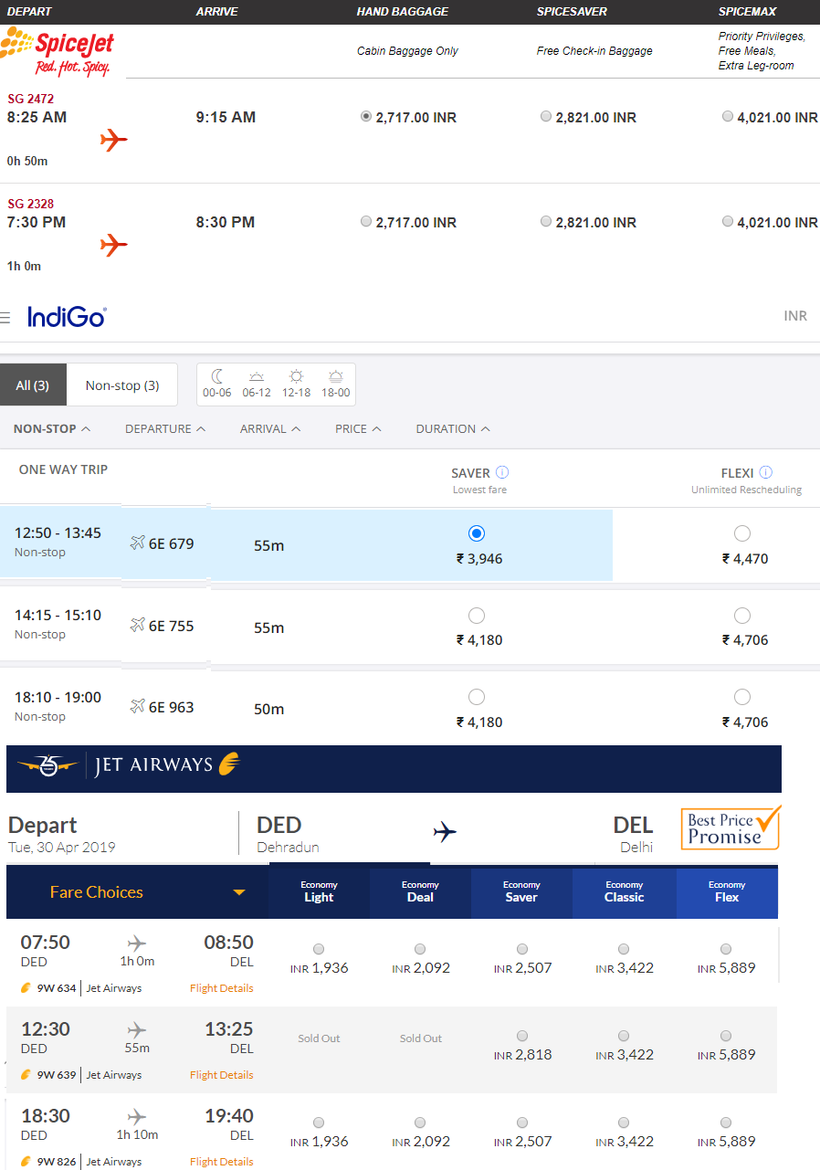 - в 07:50, 12:30 и 18:30 компании Jet Airways;