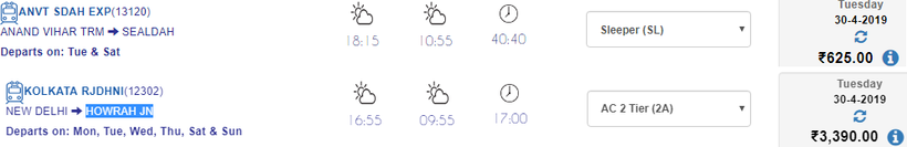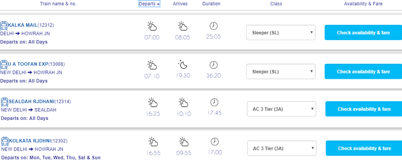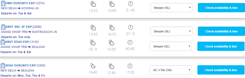 Советую ехать на ежедневном поезде Sealdah Rajdhani Express (отправление в 16:25) или на Kolkata Rajdhani Express (отправление в 16:55), потому что эти поезда быстрее всего преодолевают свой маршрут (за 18 и 17 часов соответственно).