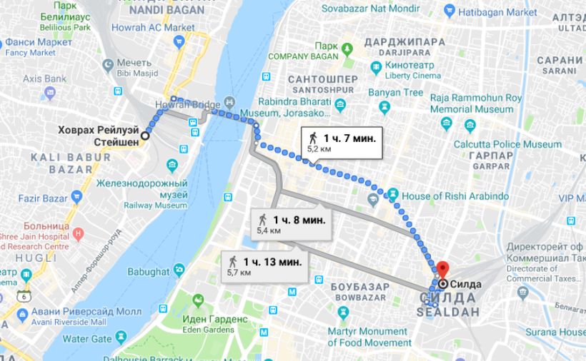 В Калькутту поезд прибывает на Sealdah railway station в районе Raja Bazar или Howrah Junction railway station.