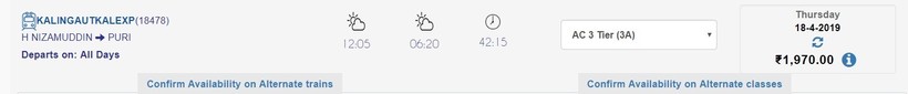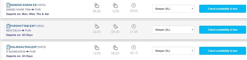 В поездах, следующих в Пури, только 3 класса вагонов: