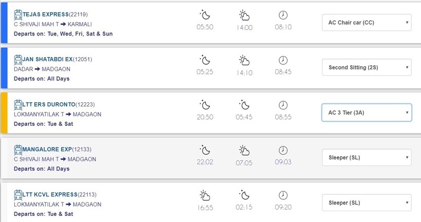 Проездной документ на поезд в Мумбаи стоит от 420 рупий (от 6 долларов или 390 рублей), а до ж/д станции Madgaon — от 270 рупий (от 4 долларов или 250 рублей).