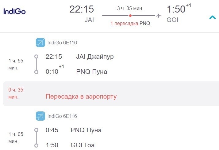 Ее сделайте, например, в Пуне. Дорога займет всего лишь 3,5 часа. Самолеты принадлежат компании IndiGo.