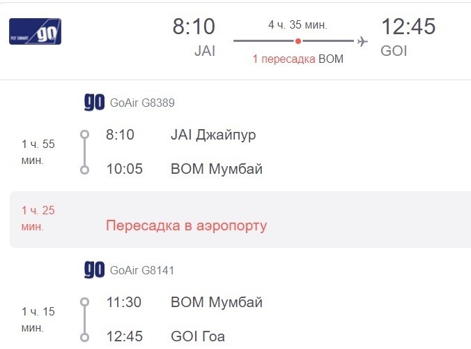 Также есть вариант полета через город Мумбаи. В небе проведете 4,5 часа. Рейс выполняет GoAir.