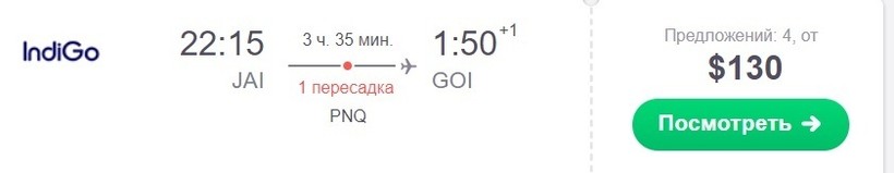 Ниже приведена информация о том, сколько часов вам потребуется, чтобы добраться от Джайпура до Гоа, а также приведена примерная стоимость проезда (средняя цена билета) на том или ином виде транспорта.