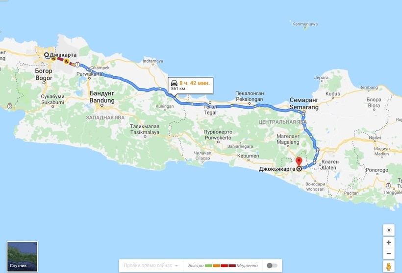 Джакарта — Джокьякарта — маршрут на карте