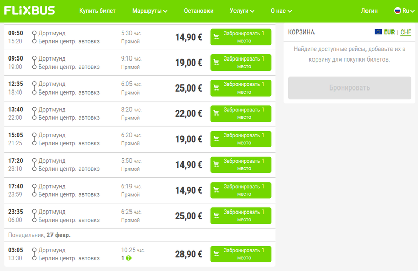 Вот мой скриншот с расписанием, взятый с сайта «Flixbus».
