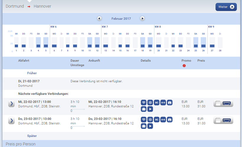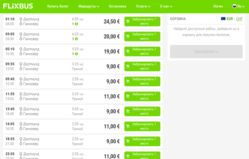 Продемонстрирую парочку скриншотов с официальных сайтов компаний перевозчиков. «Flixbus».