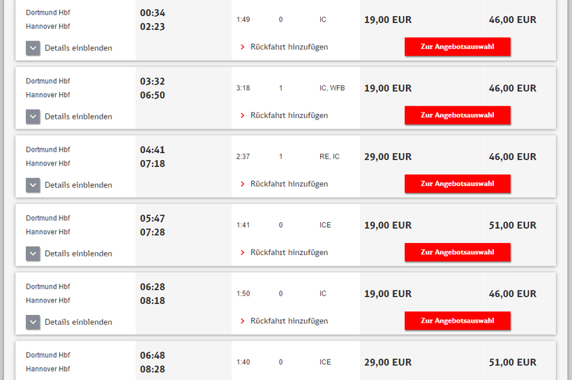 Вот так выглядит расписание, которое висит на сайте железных дорог Германии.