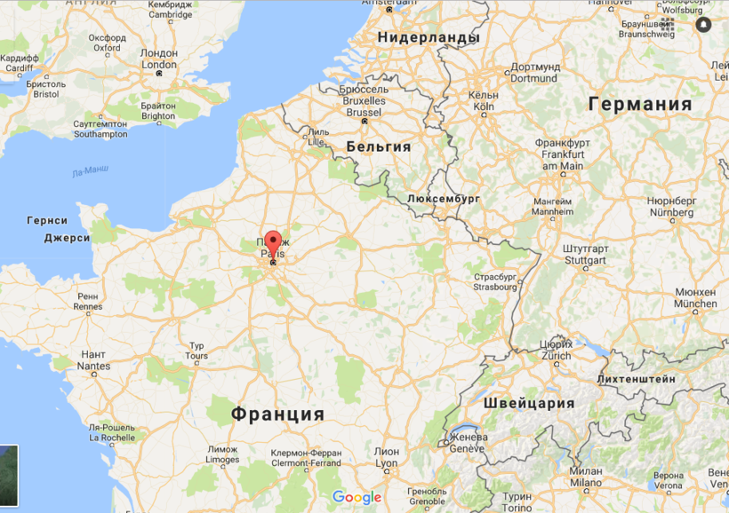 Берем курс из России на Западную Европу. Париж - столица Франции. Для наглядности смотрим карту.