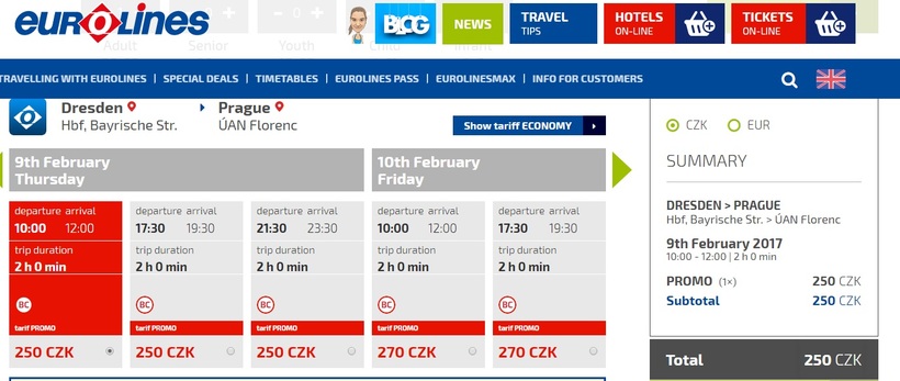 Что касается билетов Eurolines, то их стоимость равна 26 евро. Есть билеты которые вернуть нельзя, на немецком сайте они стоят 15 евро, а на чешском - 10 евро, вот снова экономия. Билеты на автобусы Flixbus стоят 12 евро до автостанции и 14 евро до вокзала.