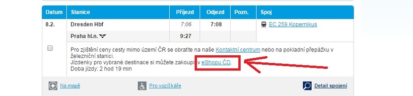 При покупке билетов на чешском сайте нажмите на eShopu ČD, как показано ниже: