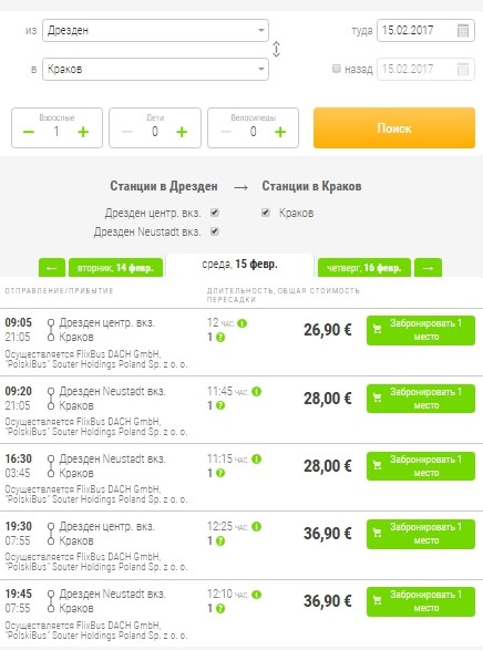 Добраться из Дрездена в Краков можно на автобусе двух компаний. Автобусы компании Фликсбус отправляются из самого города, автобусы компании Sindbad-Eurobus перевозят пассажиров из аэропорта Дрездена. Рассмотрим оба варианта.