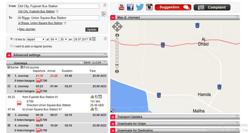 Сесть на автобус в Дубаи можно на нескольких остановках в Фуджейре. Например, на главной автостанции.
