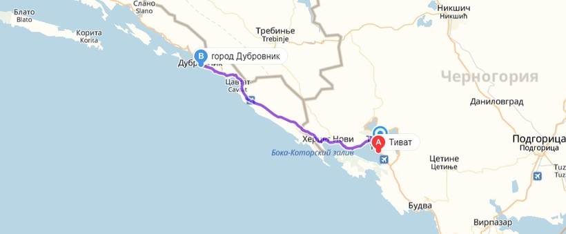 Ниже приведена информация о том, сколько часов вам потребуется, чтобы добраться от Тивата до Дубровника, а также приведена примерная стоимость проезда (средняя цена билета) на том или ином виде транспорта.