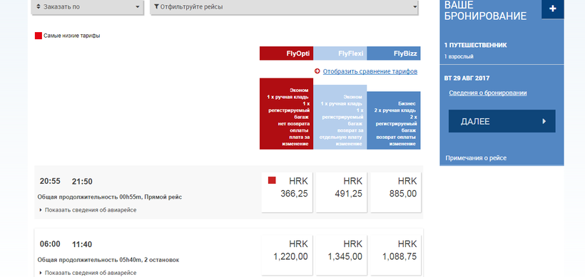 Самый простой способ приобрести билет – это зайти на сайт авиакомпании и забронировать его там. Портал поддерживает русскоязычную версию, поэтому проблем с покупкой проездного возникнуть не должно. Если вылет во вторник вам не подходит, то можно рассмотреть варианты с пересадкой в Загребе. Чтобы посмотреть все предложения, воспользуйтесь поисковиком, например, этим.