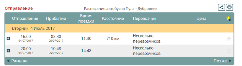Как добраться в Пулу, я рассказала выше. Из Пулы в Дубровник автобусы отправляются в 16:00 и в 20:00. Дорога займет от 11,5 до 14,5 часов.