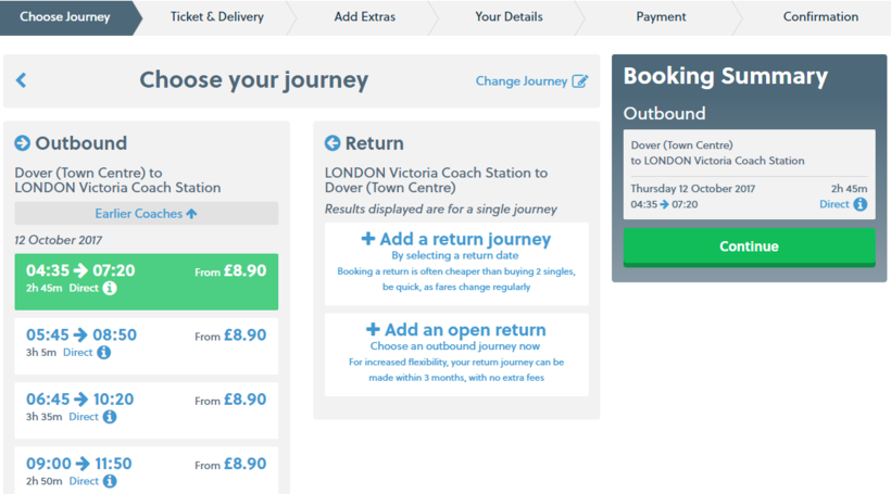 Во время поездки практически все билеты я покупала по интернету, например, на этот рейс можно купить на сайте National Express. Для этого вводите названия остановок, которые я указала выше.