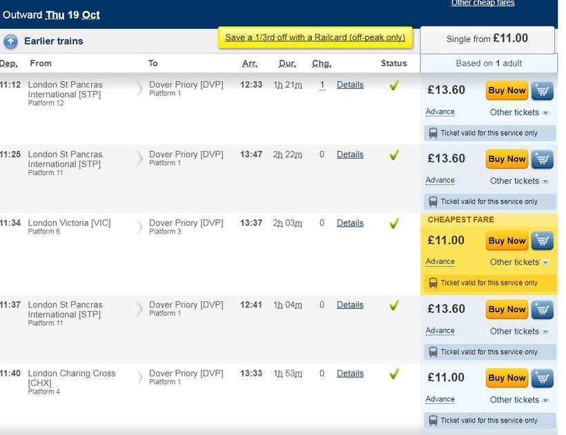 Сесть на поезд в Дувр можно на этих вокзалах: London St Pancras International, Cannon Street, Charing Cross, Blackfriars, London Victoria. Причем, это не один и тот же поезд, курсирующий по городу, а абсолютно разные составы. Есть, конечно, что поезд делает остановку на одном вокзале, потом на другом. Понять всю систему можно на сайте железной дороги. Введите просто из London в Dover Priory. Расписание смотреть не удобно, слишком растянуто, и мало информации: