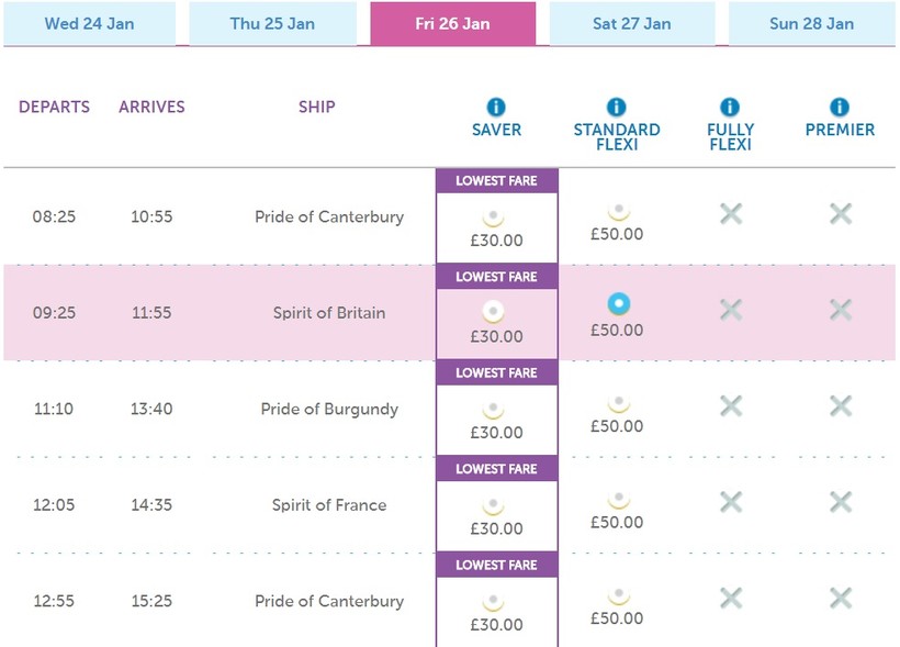 Обычно билет на одного пассажира стоит 30 фунтов (33 евро), на пассажира с легковым автомобилем - от 42 фунтов (46 евро). Для каждой категории транспортного средства есть свои расценки, все можно посмотреть на сайте.