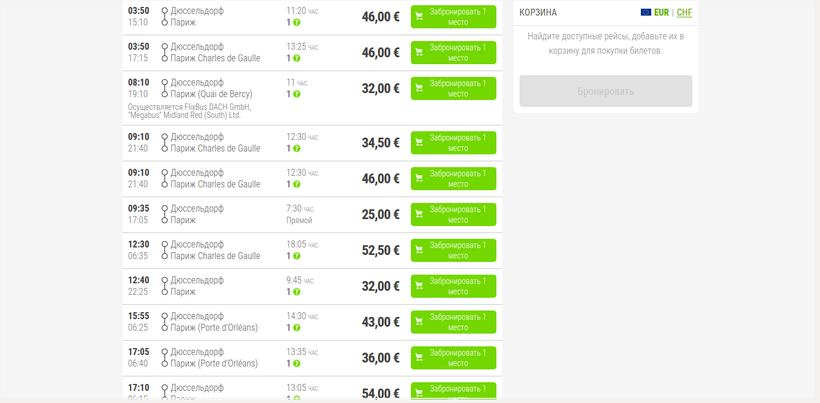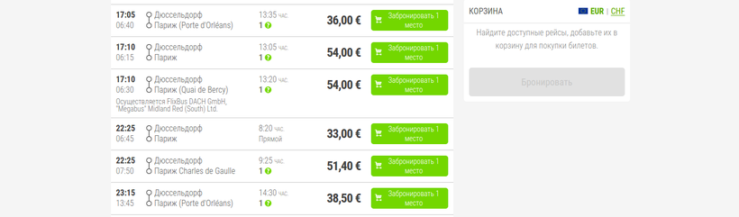 - Билеты на автобусы FlixBus стоят от 25 до 54 евро, прямые рейсы дешевле чем те что с пересадками.
