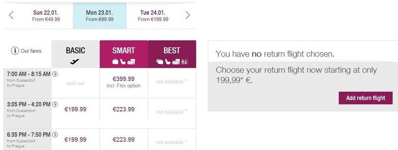 Я проверила, прямые рейсы из Дюссельдорфа в Прагу есть у компаний Eurowings, CSA Czech Airlines, Smart Wings и Air Berlin. Наиболее демократичными мне показались цены у Eurowings. С понедельника по пятницу они совершают 3 прямых перелета в день: в 07:00, 15:05 и 18:35, по субботам – только в 07:00, а по воскресеньям – в 18:35. Всего за 1 ч 15 мин самолеты авиакомпании могут доставить вас из аэропорта Дюссельдорфа до аэропорта Праги имени Вацлава Гавела.