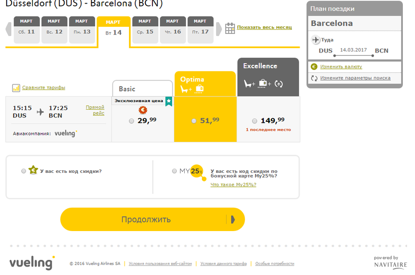 Вот пример расписания с сайта «Vueling».