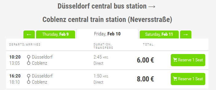 В Дюссельдорфе можно сесть на автобус до Кобленца на центральном автовокзале.