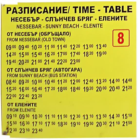 До Несебра ездят прямые автобусы (маршрут №8), но найти официального сайта этого перевозчика мне не удалось. Это и не удивительно, большинство подобной информации туристы передают друг другу на форумах, в Болгарии такое сплошь и рядом. Даже много встречала советов придти заранее на остановку и почитать актуальное расписание на столбе.