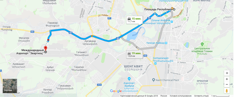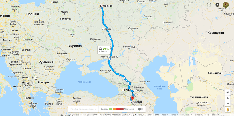 Ереван — Москва — маршрут на карте