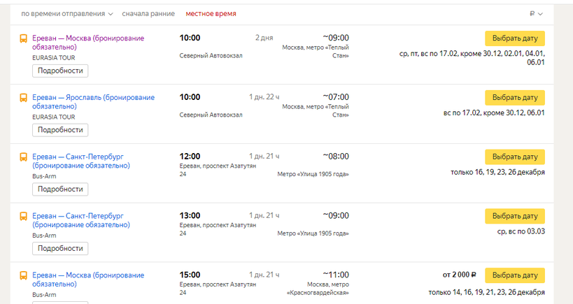 Несколько раз в неделю из Еревана в Москву ходят автобусы. Прямые. Стоят всего в районе 3–4 тысяч рублей (21–28 тысяч драмов). Это хорошая новость. Плохая — в пути придется провести около 2 суток.