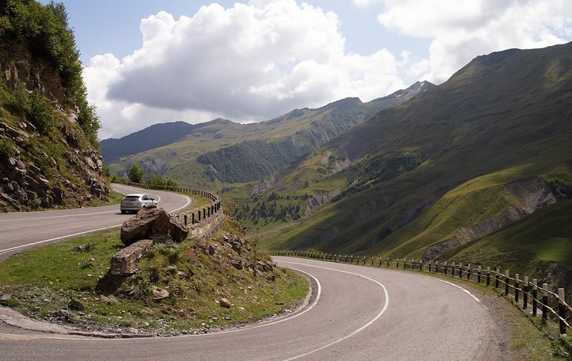 В Грузии дороги тоже в хорошем состоянии. Ехать пришлось по серпантину. Было несколько крутых поворотов, но везде в опасных местах стояли предупреждающие знаки.