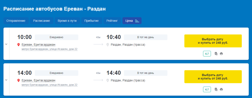 Один билет обходится в 248 рублей (1870 драм или 3,45 евро).