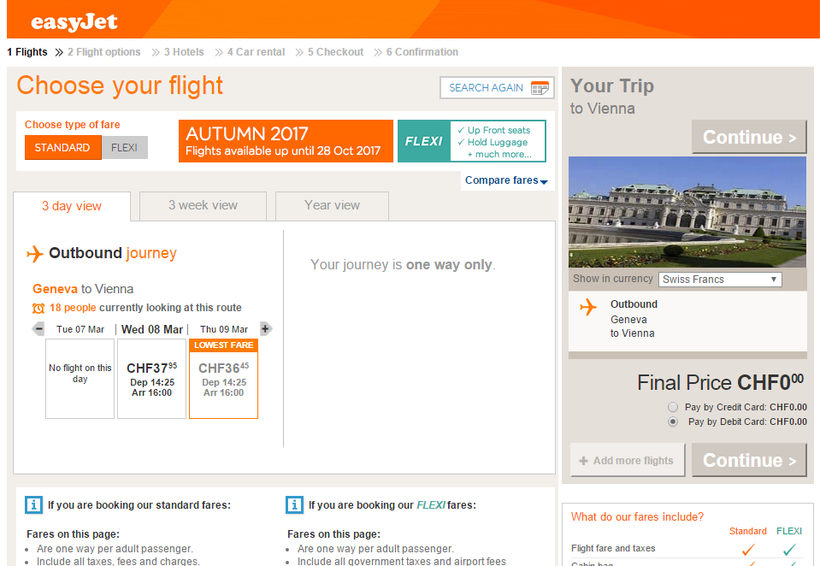 Между «EasyJet» и «Austrian Airlines», я выбрал «EasyJet».
