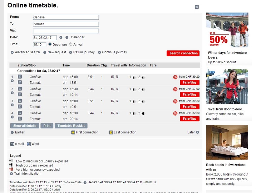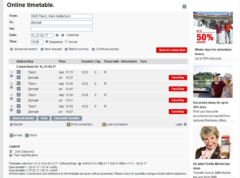 Вот фрагмент расписания с сайта железных дорог Швейцарии (SBB).