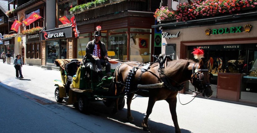 Если не любите лошадок, то до гостиницы можно доехать на электромобиле или пройтись пешком. Церматт небольшой городок, поэтому идти долго Вам не придется.