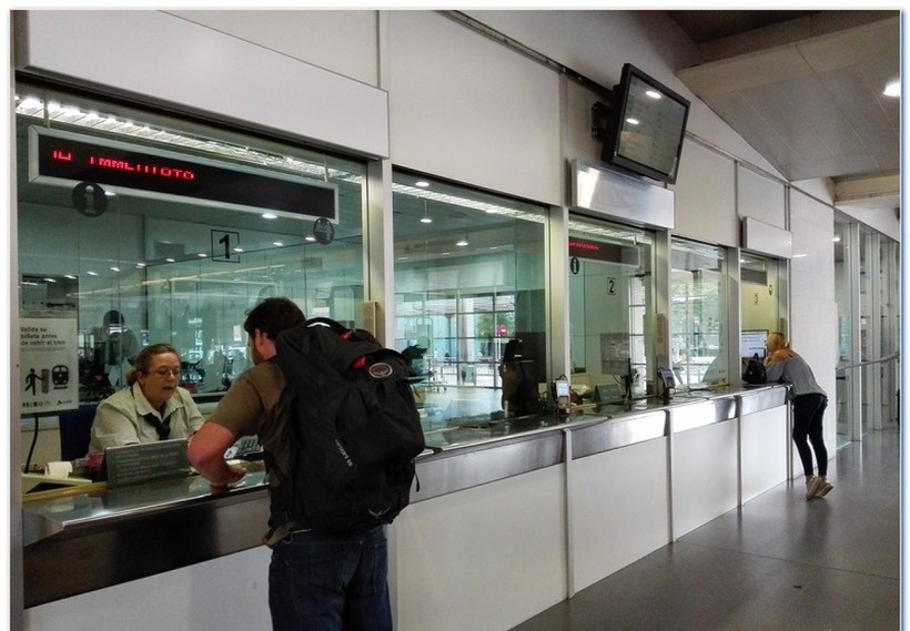 На вокзале ориентироваться не сложно, так как есть много информационных указателей с надписями на испанском и английском языке. Информацией о движении поездов по станции отображается на плазменных панелях (одну из них видно на фотографии с кассами).