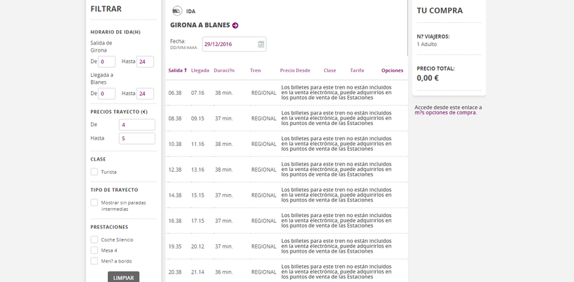 Я добирался из Жироны в Тосса Де Мар через город Бланес. Доехать до Бланеса можно на электричке, которая ходит с того же вокзала, что и автобусы. Электрички курсируют каждые два часа начиная с 6.30 и до 20.30, дорога занимает около 40 минут, подробное расписание можно увидеть на официальном сайте. В Бланесе можно сесть на автобус до Тосса Де Мар, они ходят очень часто – примерно каждые 15 минут. Маршрут автобусов начинается прямо от вокзала, так что даже ходить никуда не нужно. Ехать от Бланеса до Тосса Де Мар – всего полчаса, расписание автобусов можно узнать вот здесь. Дорога с пересадкой получается дольше, зато по этому маршруту можно уехать из Жироны в Тосса Де Мар в любое время и не надо подстраиваться под расписание автобусов. Единственным минусом может показаться железнодорожный переезд, железные дороги в Испании вообще очень запутанные, но в электричках нет ничего сложного, а для тех кто хочет досконально разобраться в этом вопросе в интернете есть хорошие подробные статьи вроде вот этой.