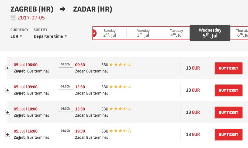 Билеты на автобус обойдутся от 96 хорватских кун (13 евро).