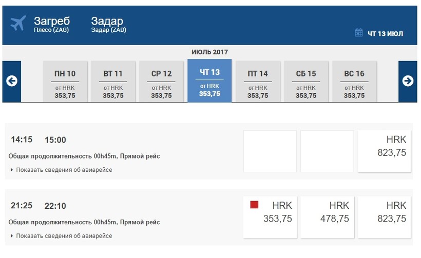Авиабилеты обойдутся от 354 хорватских кун (48 евро).